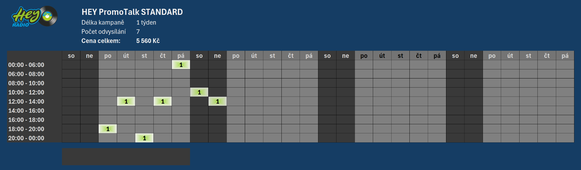 Cena za HEY PromoTalk Standard: 5 560 Kč