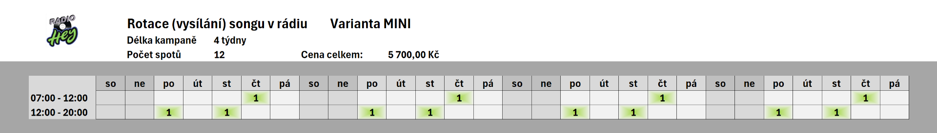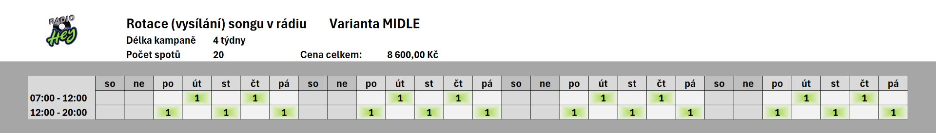 Rádio HEY (ceník 2026)